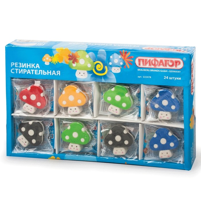 Ластик ПИФАГОР "Гриб", микс, подвес станет отличным помощником для детей и взрослых в любых ситуациях: в школе, на работе или дома!
