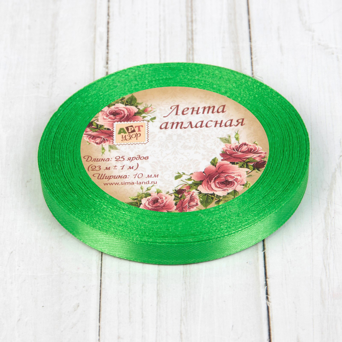 Лента атласная, 10мм, 23±1м, №130, цвет зелёный
