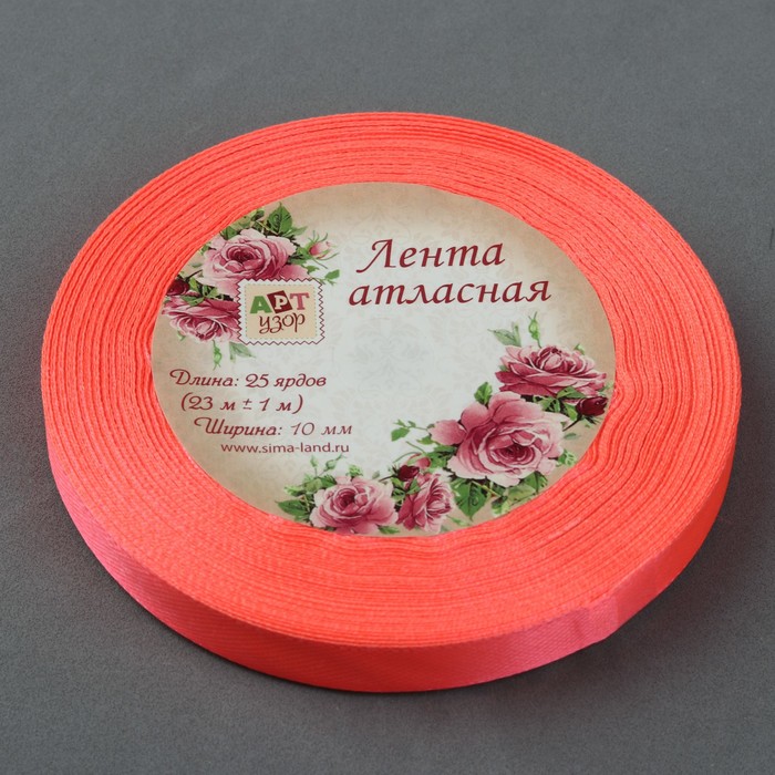Лента атласная, 10мм, 23±1м, №145, цвет неоново-розовый