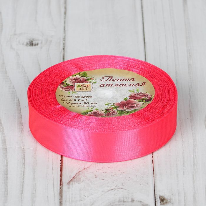 Лента атласная, 20мм, 23±1м, №14, цвет неоново-розовый