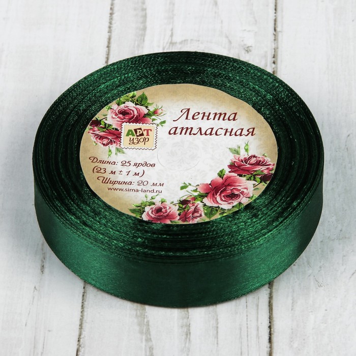 Лента атласная, 20мм, 23±1м, №49, цвет тёмно-зелёный