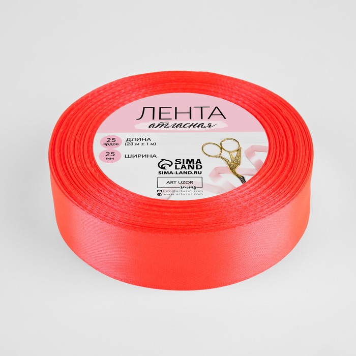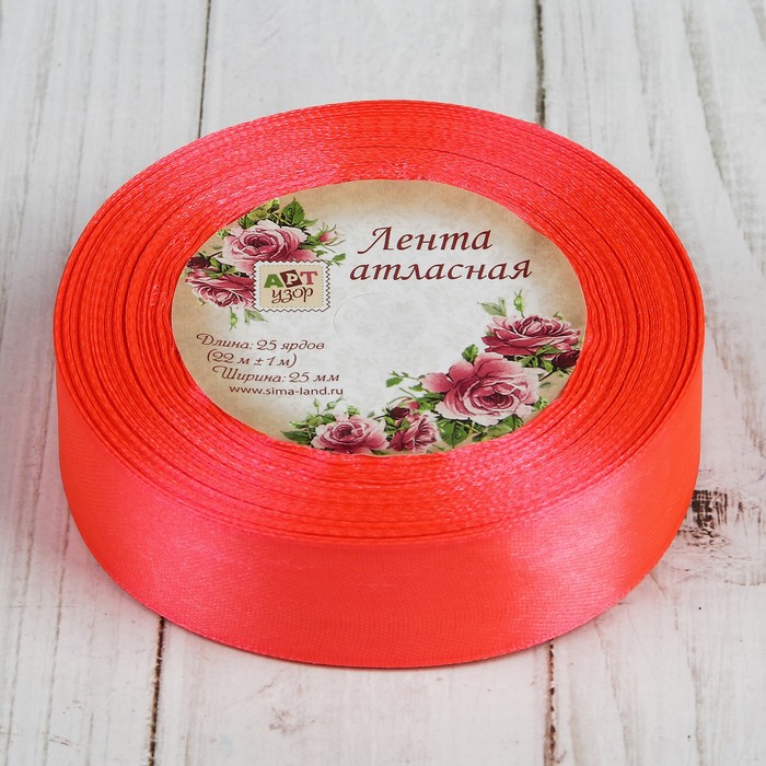 Лента атласная, 25мм, 23±1м, №145, цвет неоново-розовый