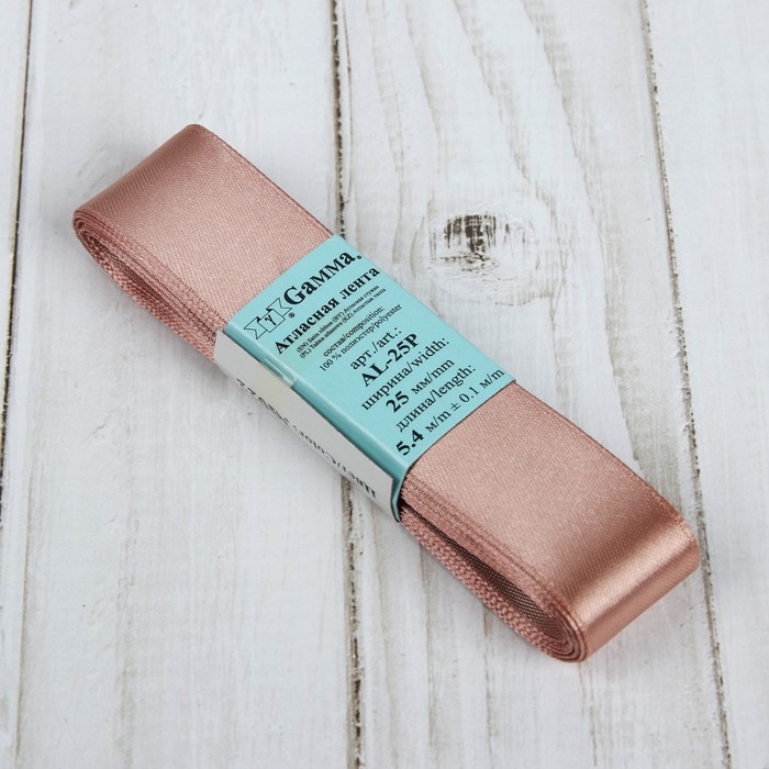 Лента атласная, 25мм, 5,4м, №022, цвет бежевый