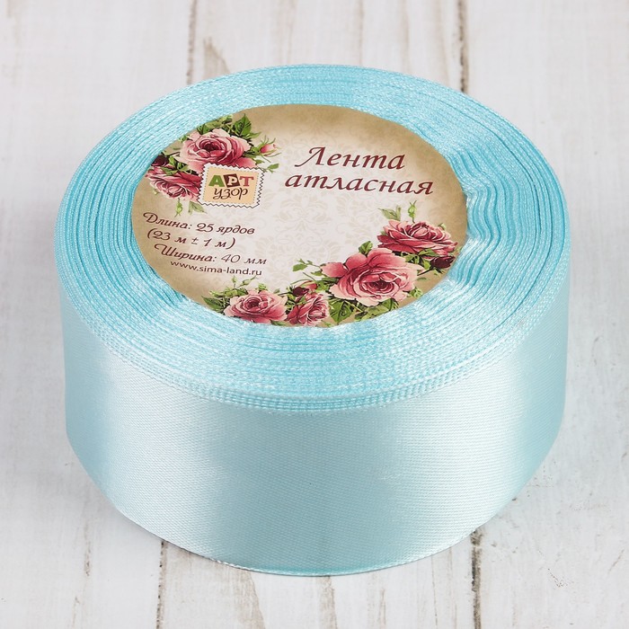 Лента атласная, 40мм, 23±1м, №13, цвет бледно-голубой