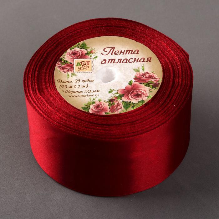 Лента атласная, 50мм, 23±1м, №37, цвет бордовый
