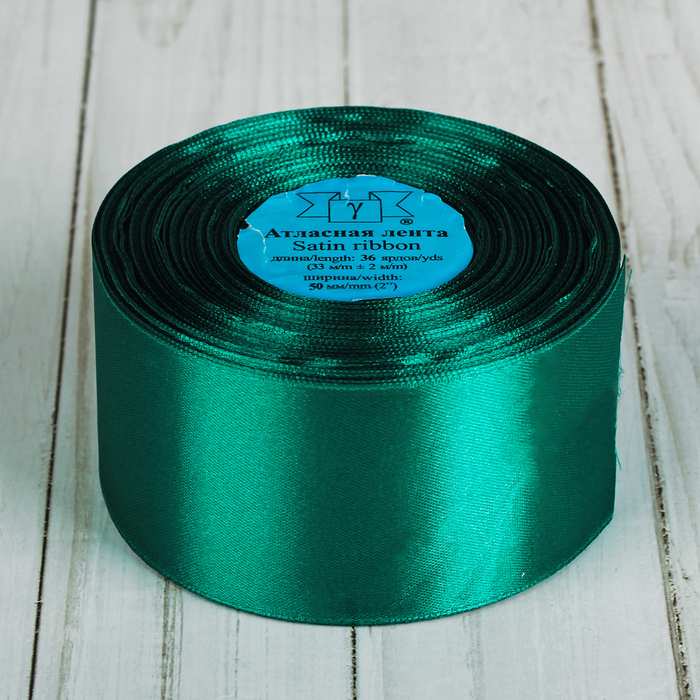 Лента атласная, 50мм, 33±2м, №016, цвет изумруд
