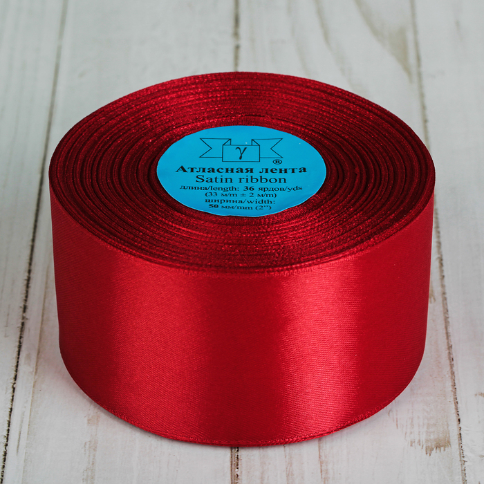 Лента атласная, 50мм, 33±2м, №065, цвет красный
