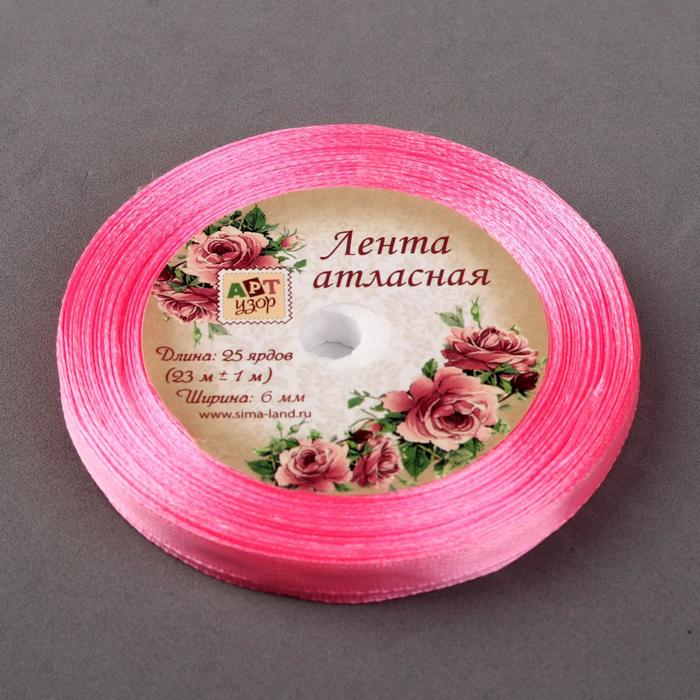 Лента атласная, 6мм, 23±1м, №05, цвет ярко-розовый