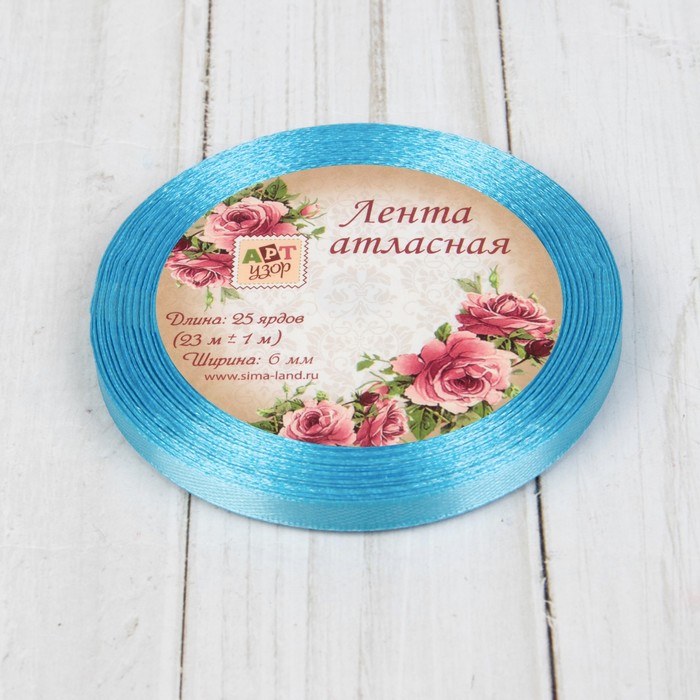 Лента атласная, 6мм, 23±1м, №20, цвет ярко-голубой