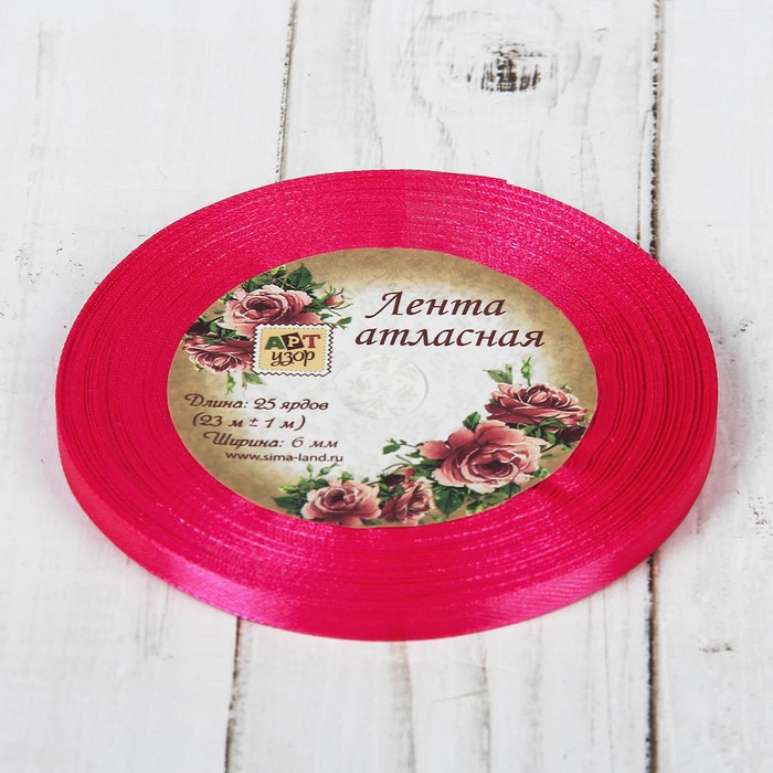 Лента атласная, 6мм, 23±1м, №89, цвет малиновый