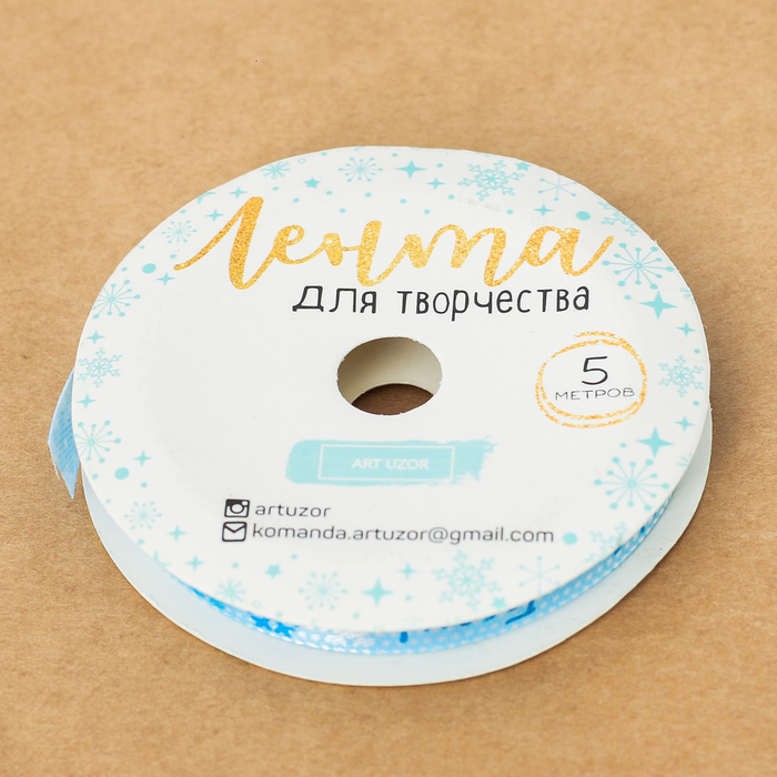 Лента атласная декоративная «Снежинки», 1 см × 5 м