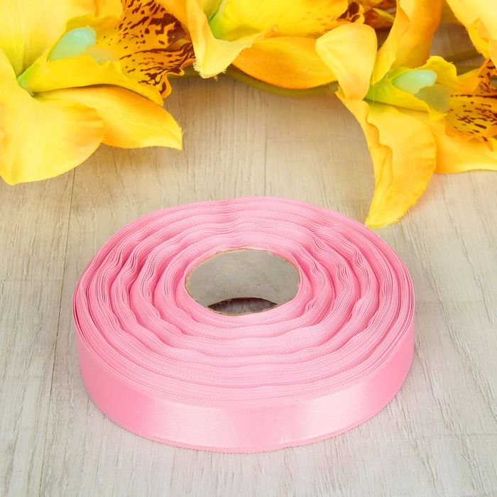 Лента атласная, двусторонняя, 17мм, 25±1м, цвет розовый