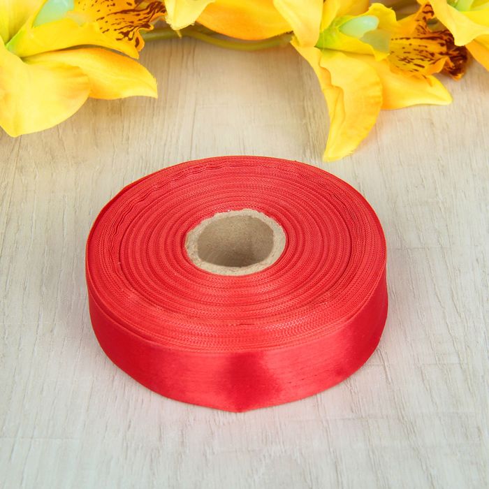 Лента атласная, двусторонняя, 25мм, 25±1м, цвет красный