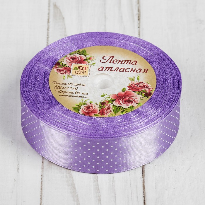 Лента атласная "Горошек", 25мм, 23±1м, №125, цвет фиолетовый
