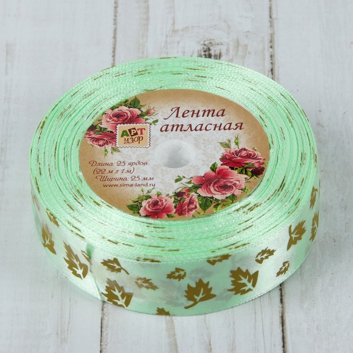 Лента атласная «Листья», 25мм х 22±1м, цвет зелёный