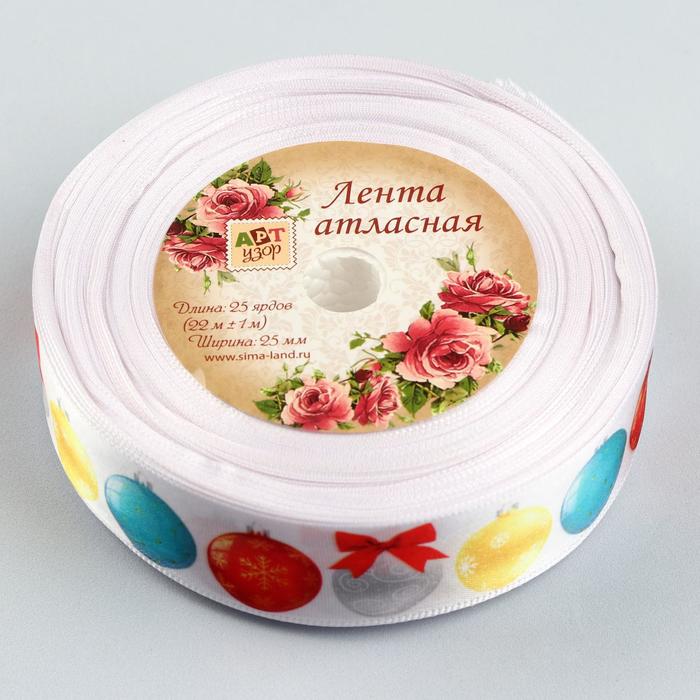 Лента атласная «Шарики», 25мм, 22±1м, цвет белый