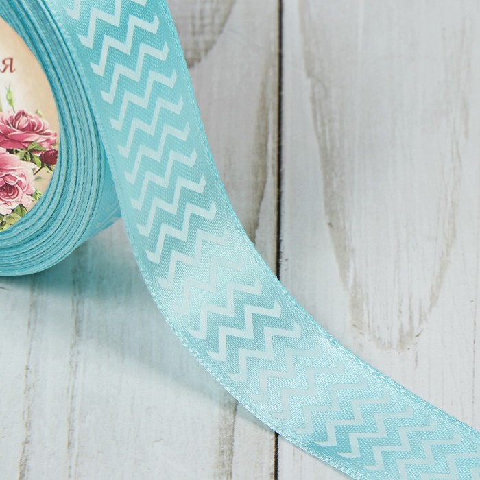 Лента атласная "Зигзаг", 25мм, 23±1м, №11, цвет белый/голубой