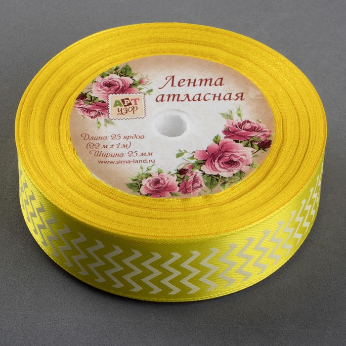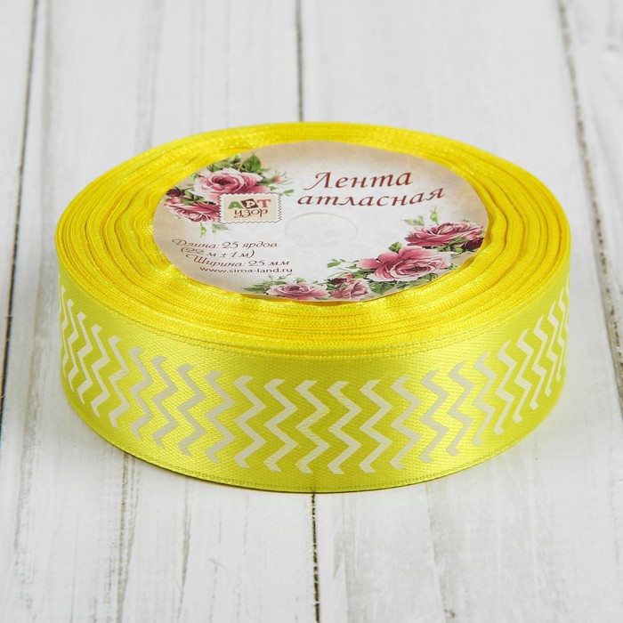 Лента атласная "Зигзаг", 25мм, 23±1м, №112, цвет белый/жёлтый