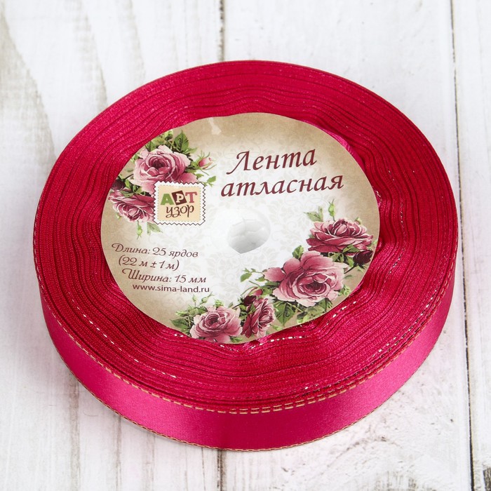 Лента атласная "Золотые нити", 15мм, 23±1м, №130, цвет малиновый