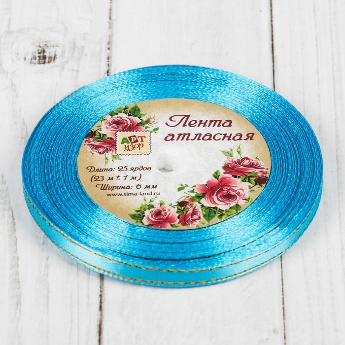Лента атласная "Золотые нити", 6мм, 23±1м, №020, цвет голубой