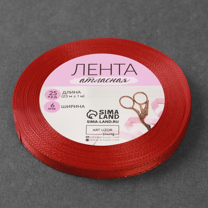 Лента атласная "Золотые нити", 6мм, 23±1м, №026, цвет красный