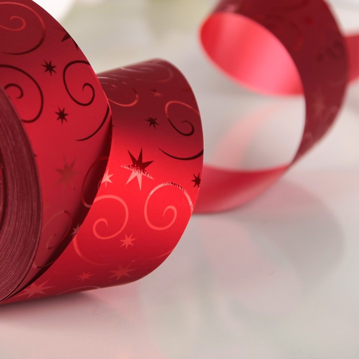 Лента декоративная "Галактика", металлизированная, красная, 34 мм х 50 м