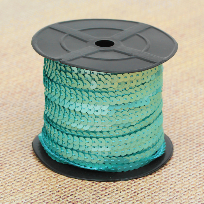 Лента декоративная пайетки, ширина 6мм, 91±1м, №18, цвет бирюзовый