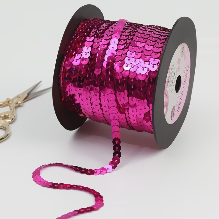 Лента декоративная пайетки, ширина 6мм, 91±1м, №8, цвет малиновый