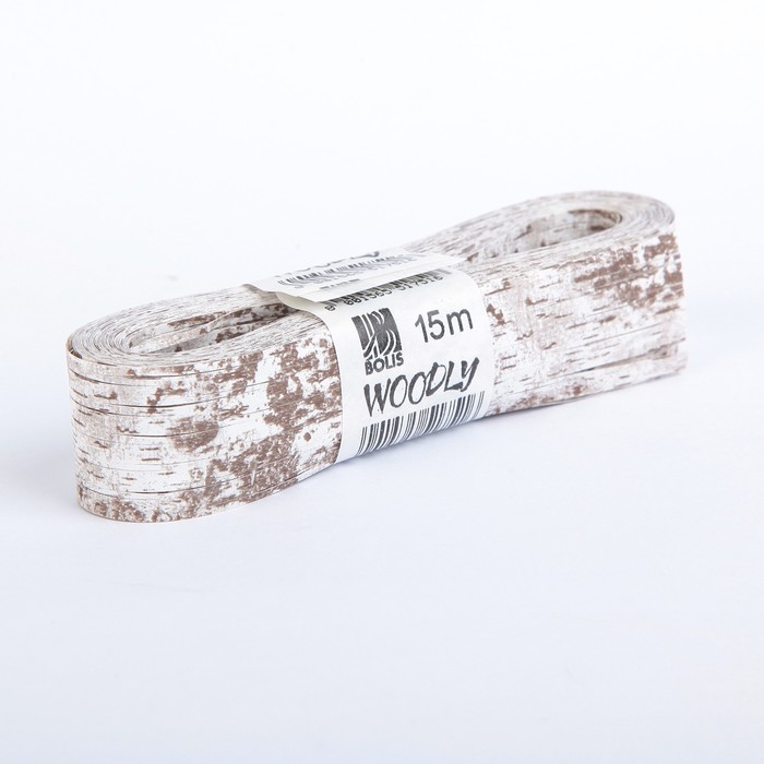 Лента декоративная, WOODLY CORTECCIA, двусторонняя, белая, 24 мм х 15 м