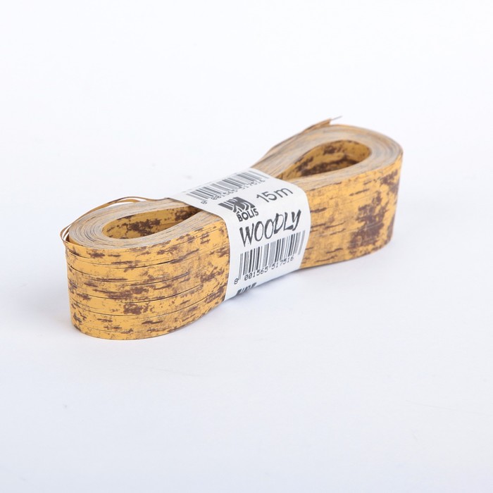 Лента декоративная, WOODLY CORTECCIA, двусторонняя, светлая охра, 24 мм х 15 м