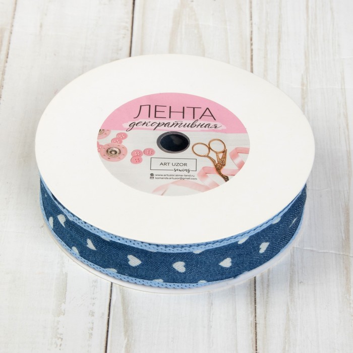 Лента хлопковая "Сердечки", джинса, 25мм, 23±1м, №8, цвет синий