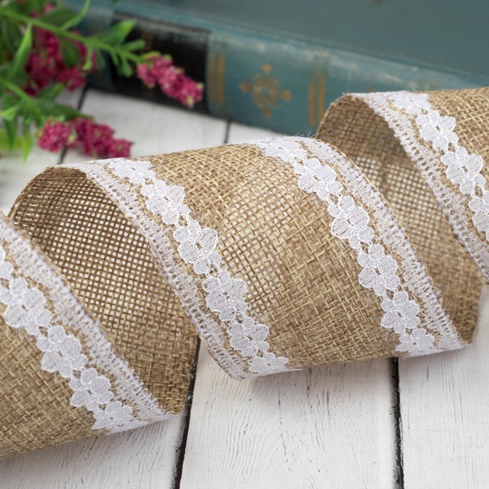Лента холщовая "Кружево", 50мм, 5±1м, цвет бежевый