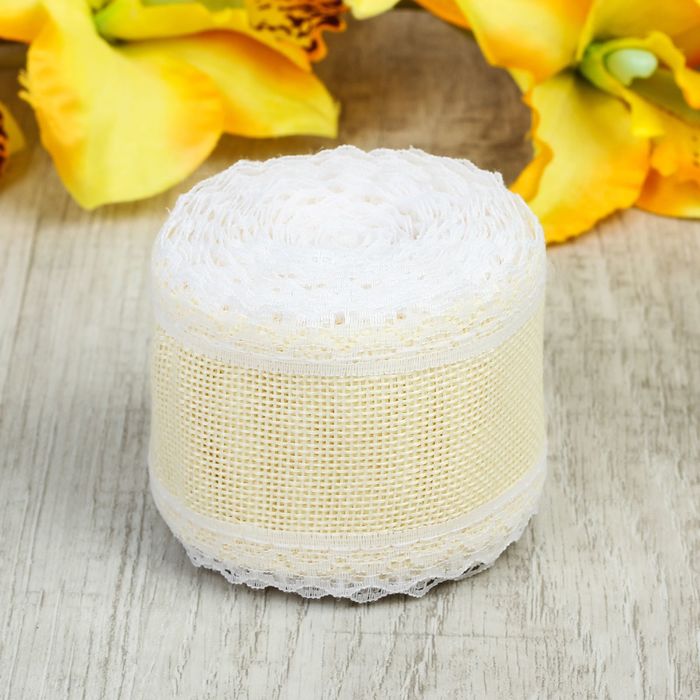 Лента холщовая "Кружево", 60мм, 4,5±1м, цвет белый