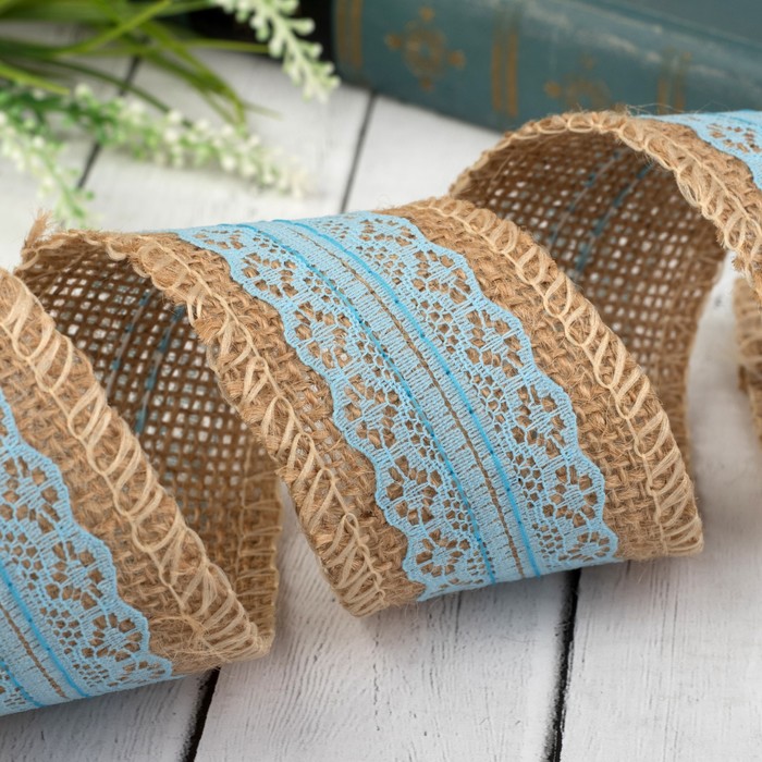 Лента холщовая "Кружево", натуральная, 48мм, 5±1м, цвет голубой
