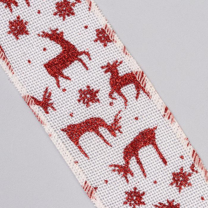 Лента холщовая "Олени", 60мм, 4,6±1м, цвет красный/бежевый