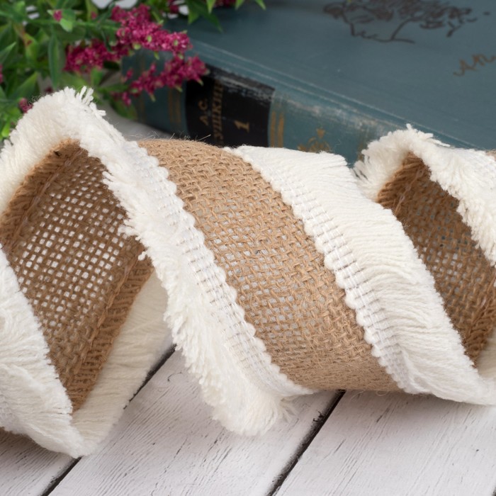 Лента холщовая с бахромой, натуральная, 50мм, 4,5±1м