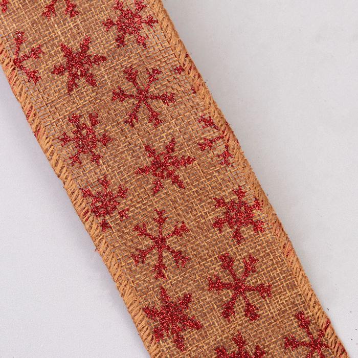Лента холщовая "Снежинки", 60мм, 4,6±1м, цвет красный/бежевый