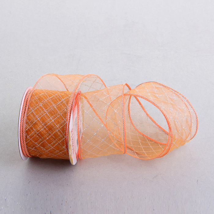 Лента из органзы с блёстками "Клетка", цвет оранжевый