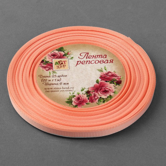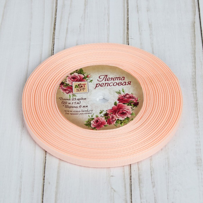 Лента репсовая, 6мм, 22±1м, №07, цвет персиковый