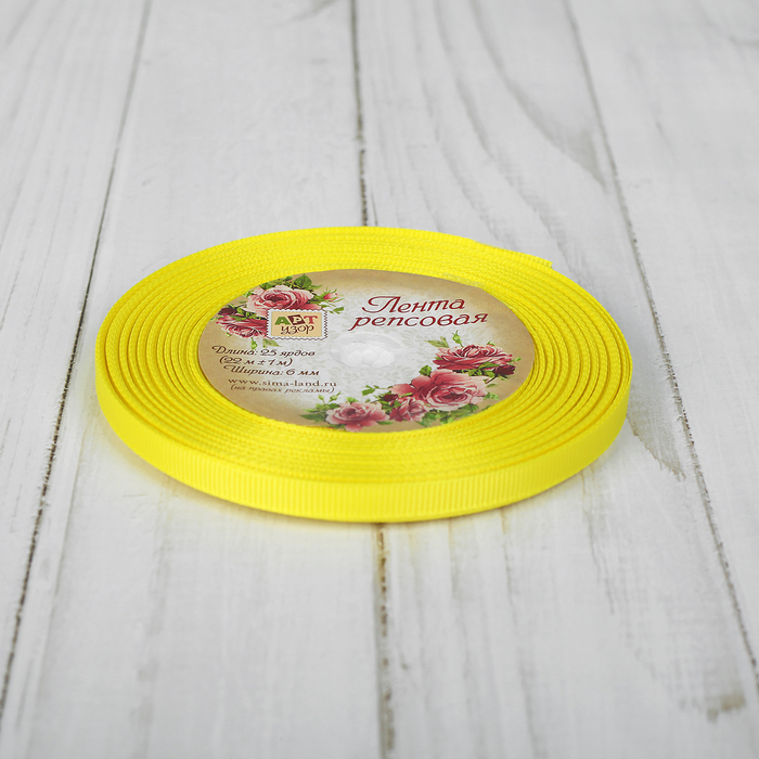 Лента репсовая, 6мм, 22±1м, №15, цвет жёлтый