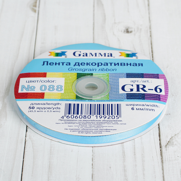 Лента репсовая, 6мм, 45,5(±0,5)м, №088, цвет голубой