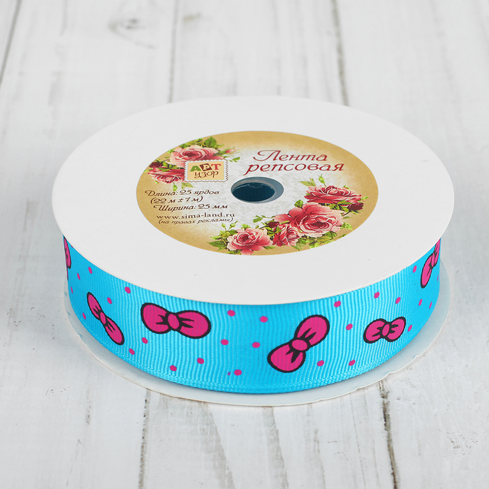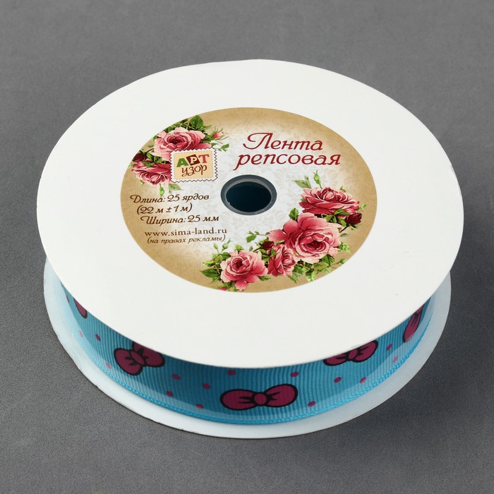 Лента репсовая "Бантики", 25мм, 22±1м, цвет голубой