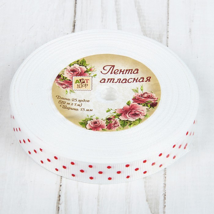 Лента репсовая "Горошек", 15мм, 22±1м, цвет белый
