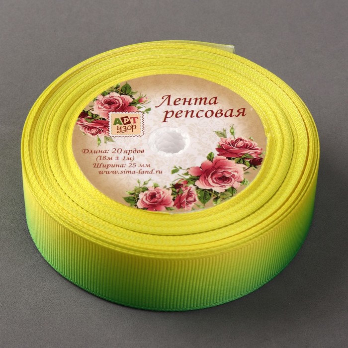 Лента репсовая «Градиент», 25мм, 18±1м, цвет жёлтый/зелёный