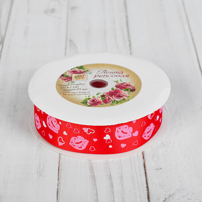 Лента репсовая "Губы", 25мм, 22±1м, цвет красный