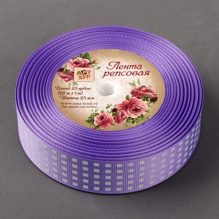 Лента репсовая "Клетка", 25мм, 22±1м, цвет сиреневый