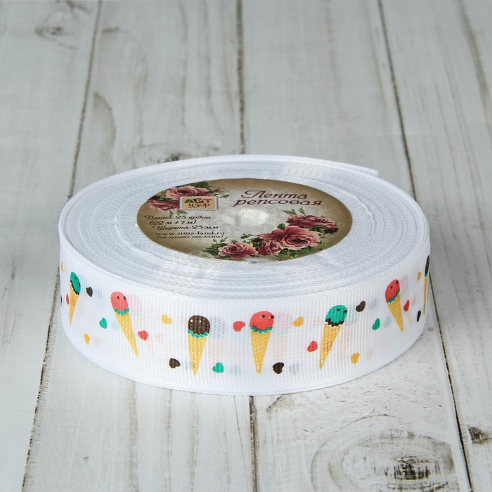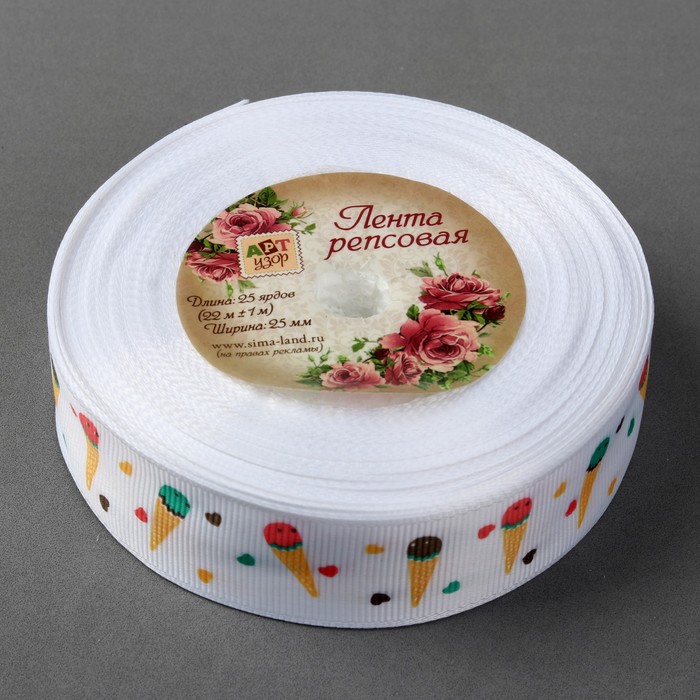 Лента репсовая "Мороженное", 25мм, 22±1м, цвет белый