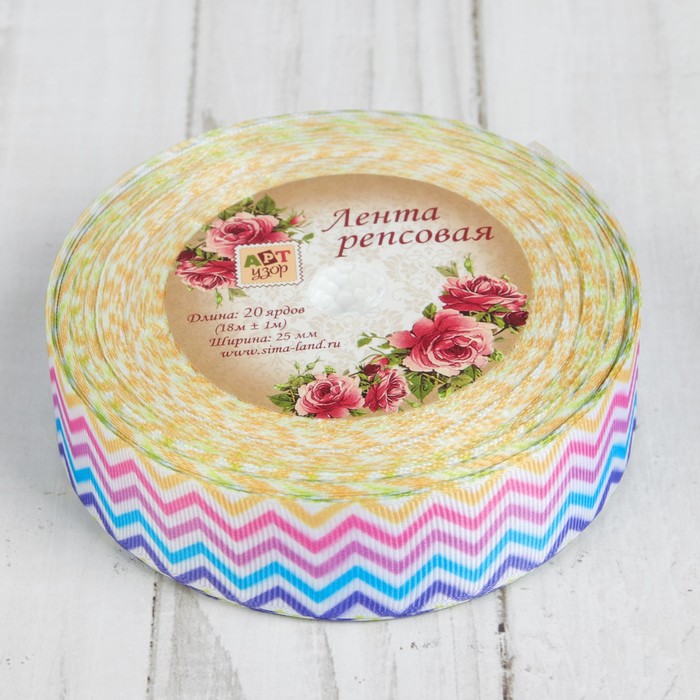 Лента репсовая «Радужный зиг-заг», 25мм, 18±1м, разноцветная
