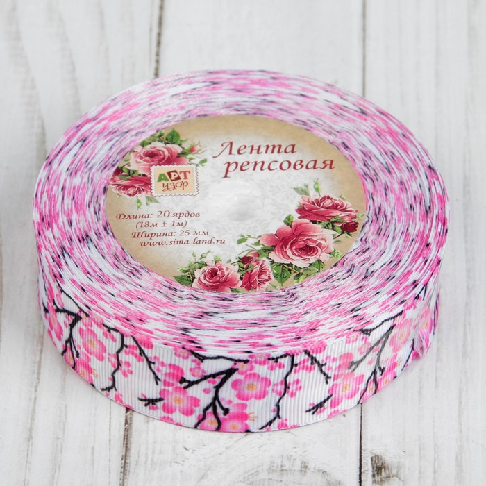 Лента репсовая «Сакура», 25мм, 18±1м, разноцветная