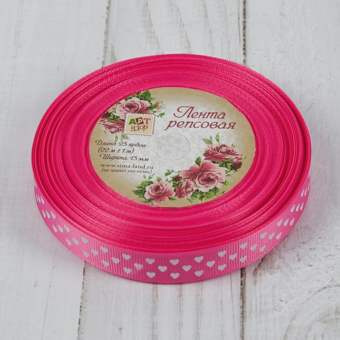 Лента репсовая "Сердечки", 15мм, 22±1м, цвет розовый